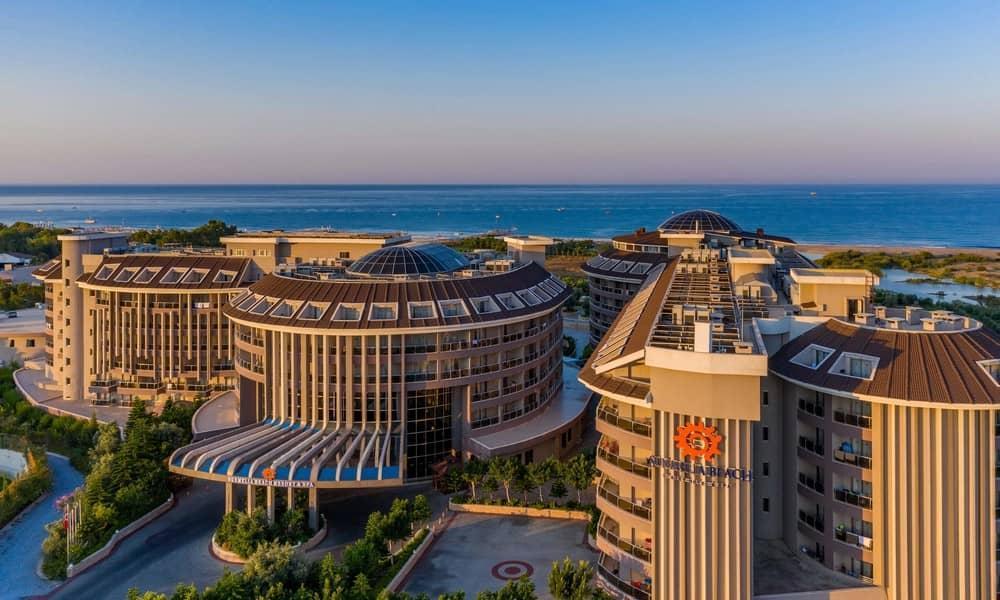 Sunmelia Beach Resort Hotel & Spa se může pyšnit jak venkovním bazénem, tak krytým a bazénkem pro děti. Najdete ho v letovisku Kizilagac, asi 10 kilometrů od města Manavgat a kromě bazénů tu také oceníte vlastní soukromou písčito-oblázkovou pláž, která vede přes privátní most a kde můžete nachytat dost vitamínu D. Pokoje mají krásný výhled na moře a do resortu se můžete vydat i autem, protože nabízí bezplatné parkoviště.