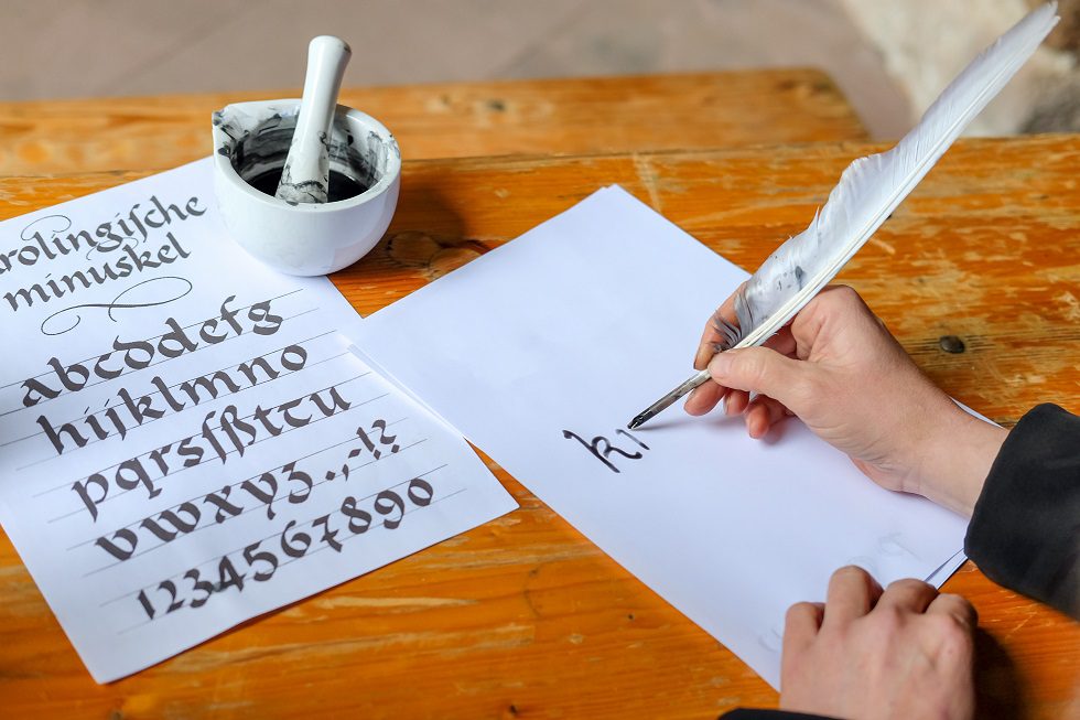 Karel Veliký je také oblíbený u řady historiků díky standardizaci písma a písemného projevu. Na svém dvoře nechal vytvořit set písmen a pravidel psaní, která se následně šířila i do dalších krajů Evropy. Toto písmo se označuje karolinská miniskula, které mimo jiné zdůrazňovalo čitelnost, dostatečné mezery mezi slovy, rozlišování malých a velkých písmen nebo přehledné řádkování. Velká část písem do té doby nepoužívala mezery mezi slovy.