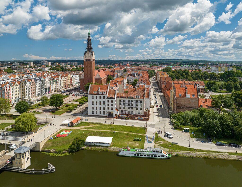 Elbląg nabízí unikátní kombinaci středověké architektury a moderní turistické infrastruktury s katedrálou sv. Mikuláše vysokou 97 metrů. •