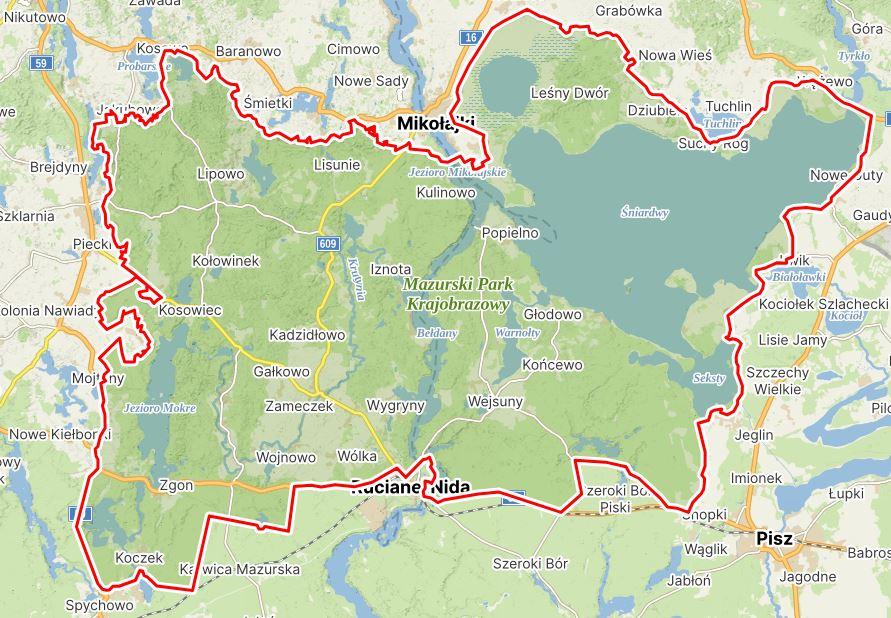 Mapa Mazurských jezer zahrnuje rozsáhlou oblast na severovýchodě Polska, která je protkána sítí více než 2 000 jezer, kanálů a řek. Celková délka vodních cest v této oblasti přesahuje 1 000 kilometrů.