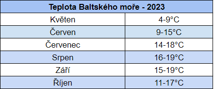 Teplota Baltského moře se v létě pohybuje až okolo 18-22 °C.
