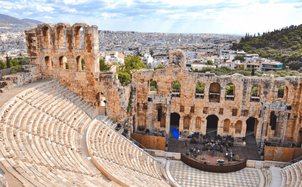 Toto římské divadlo bylo dokončeno v roce 161 n. l. Postavil ho bohatý veřejný mecenáš Herodes Attikus jako památník své manželky Regilly. Původně mělo cedrovou střechu a třípatrovou fasádu z oblouků. Je to jedno z nejstarších a nejkrásnějších divadel pod širým nebem na světě. Vešlo se do něj 4 500 diváků.